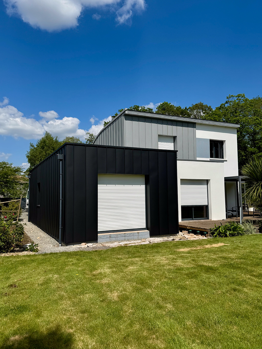 Bardage en Aluminium Noir et Gris Quartz sur une maison individuelle
